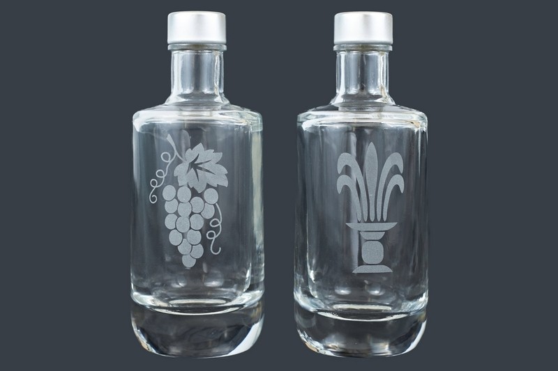Coppia bottiglie cilindriche acqua e vino in cristallo cc. 125 - alt.cm.12,5
