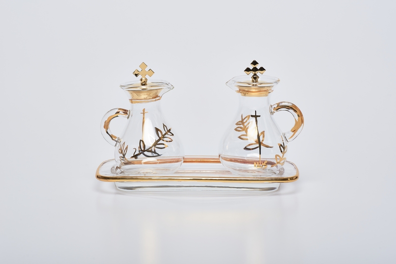 Servizio di ampolline decorate 100 CC. con vassoio vetro - cm. 20x9,5