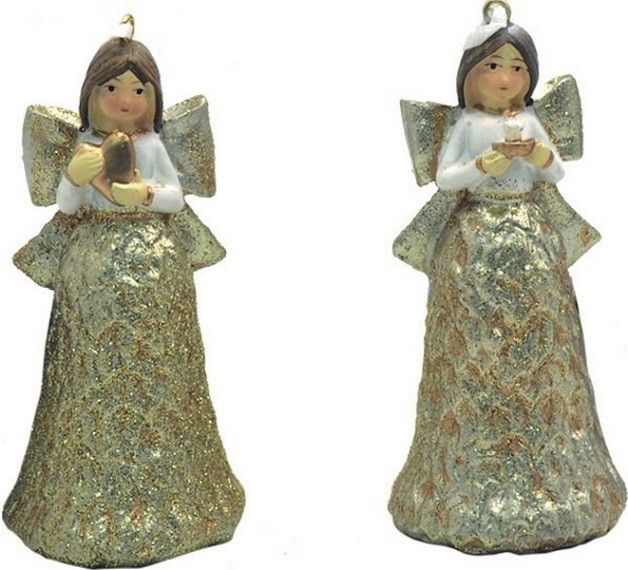 Angioletto campanello veste champagne in resina con ali fiocco cm. 10 - soggetti assortiti (in scatola)