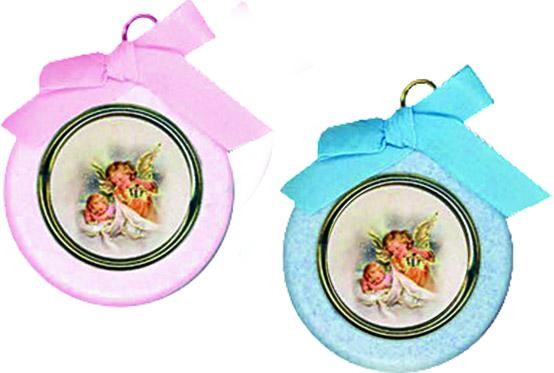Medaglione sopraculla in plastica rosa o azzurro - cm. 4,8