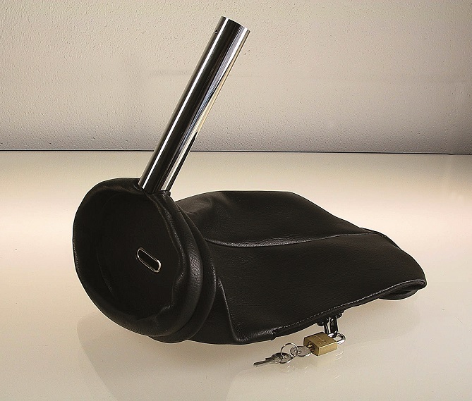 Busta per elemosine con lucchetto - con piccola feritoia, anche rovesciandola non fuoriescono le offerte. Con attacco per manico in legno (art. A877)