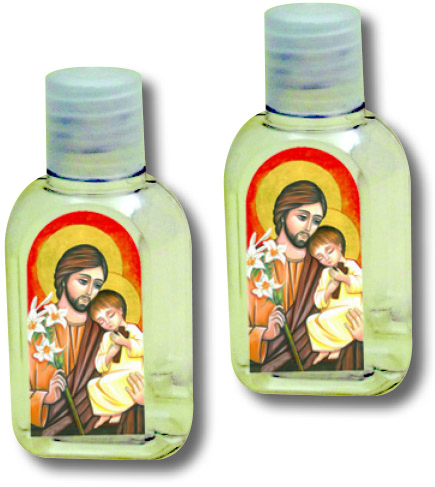 Bottiglietta acqua o olio 50 ml. in scatola di cartone da 100 pezzi con adesivo S. Giuseppe da attaccare