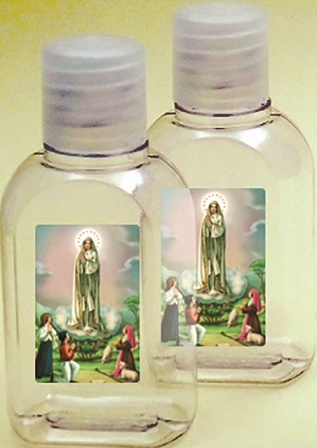 Bottiglietta in plastica per acqua benedetta con adesivo Madonna di Fatima (da attaccare) da 50 ml. in scatola di cartone (100 pezzi)