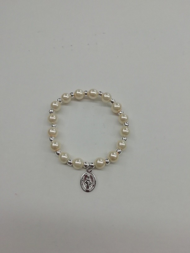 Braccialetto elastico grano in vetro perlato con croce metallo argentato