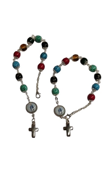 Decina braccialetto rosario grani in vetro mm. 8 con moschettone