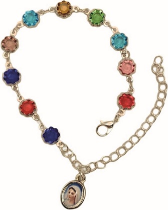 Braccialetto in metallo, grano fiore con vetro colorato