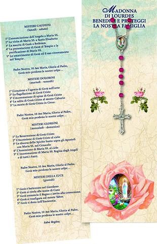 Decina profumata con crociera Madonna di Lourdes e cartoncino misteri del rosario (in blister)