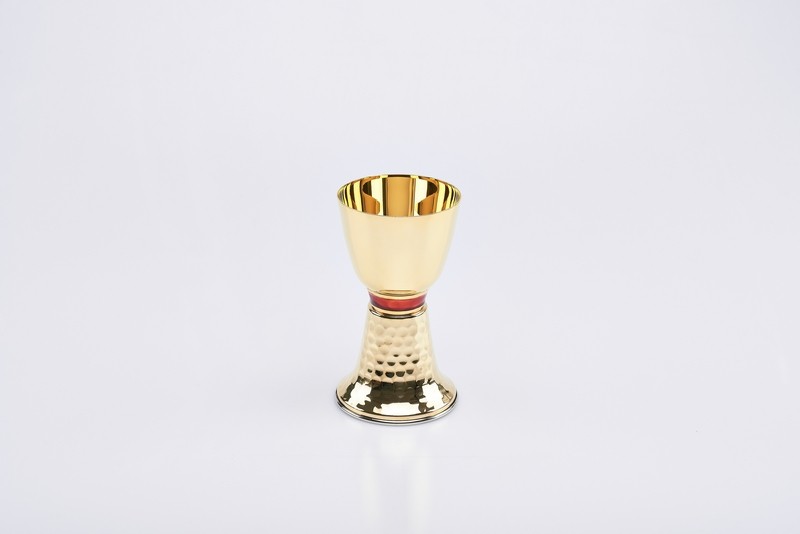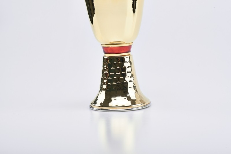 Calice ottone dorato con anello smaltato - alt. cm.16 diam. cm.9