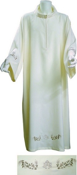 Camice maniche raglan, tessuto poliestere 100% collo finto cappuccio con cerniera, ricamo sul fondo e sulle maniche - color avorio