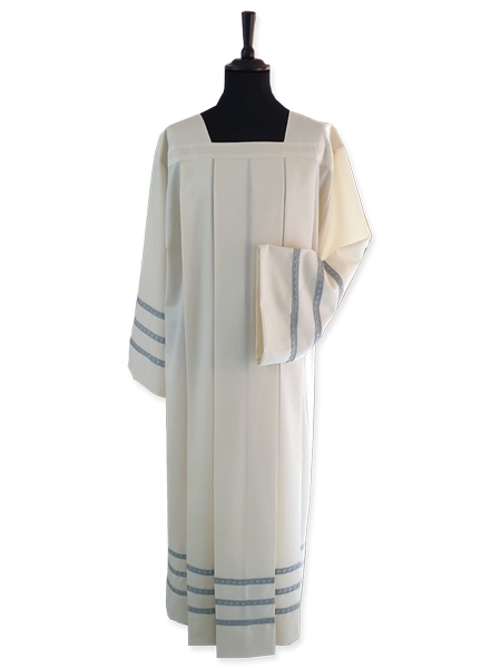 Camice collo squadrato in misto cotone (cotone 65%-poliestere35%) con piegoni e tre giri di tramezzo sul fondo e sulle maniche.