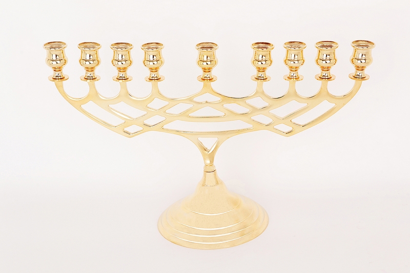 Candelabro MENORAH 9 candele cm. 48×27 in ottone fuso a terra con doratura 24K.