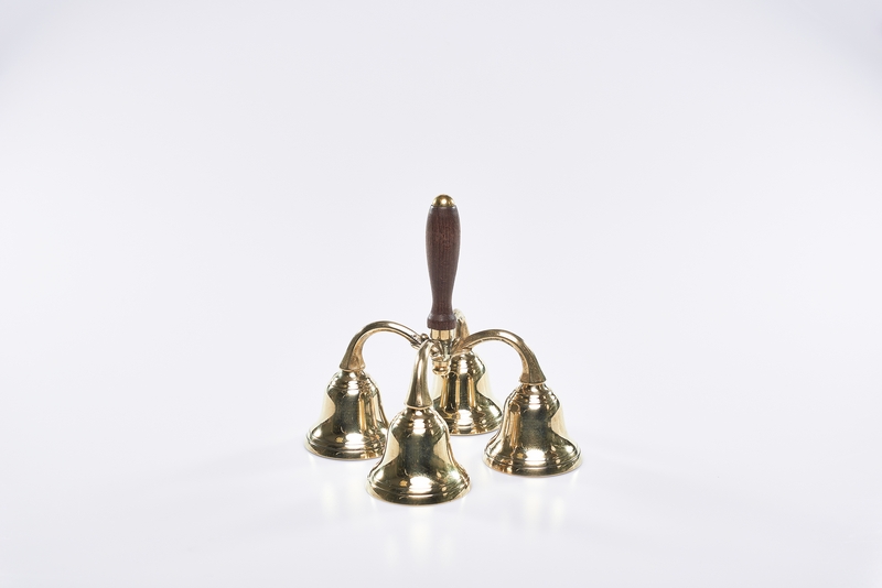 Campanello aquattro suoni in ottone con manico in legno. cm. totali: 18x15,5.