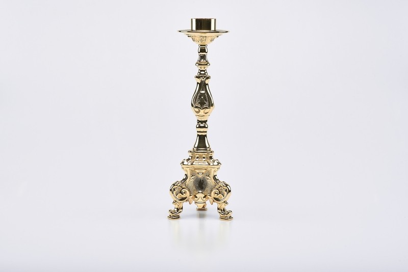 Candeliere "Rococò " , altezza cm.30- misura bossolo cm.4 . Questi candelieri sono forniti in ottone lucido,se richiesti dorati o nikelati sovrapprezzo del 15%.( A richiesta questo prodotto puo' essere elettrificato).