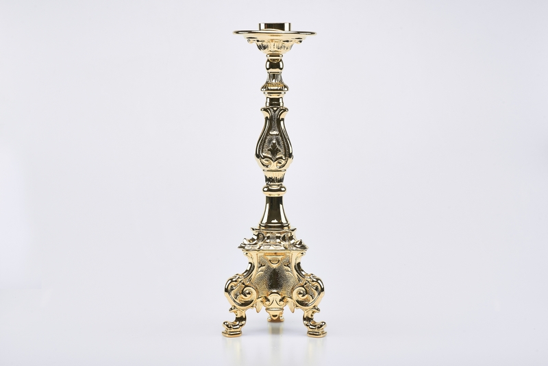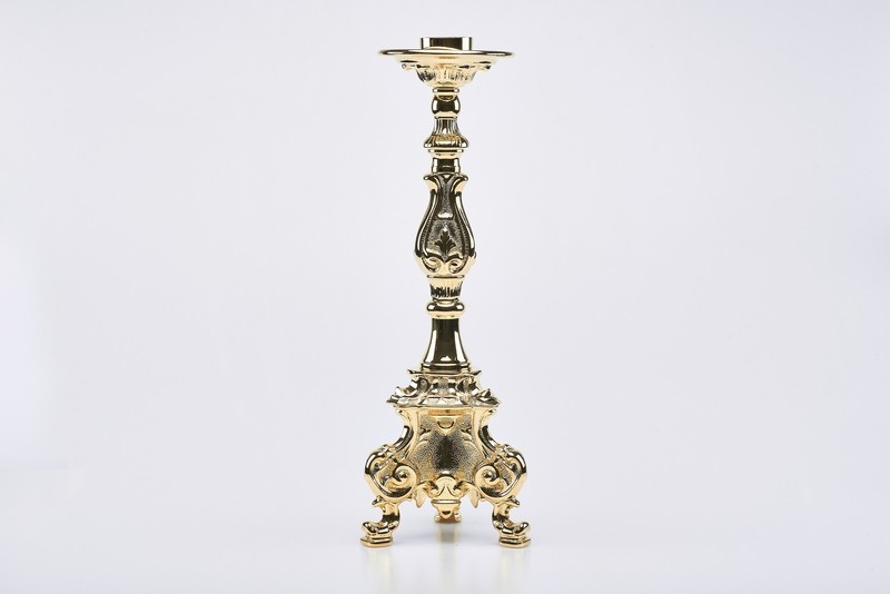 Candeliere "Rococò " , altezza cm.40- misura bossolo cm.4 . Questi candelieri sono forniti in ottone lucido,se richiesti dorati o nikelati sovrapprezzo del 15%.( A richiesta questo prodotto puo' essere elettrificato).