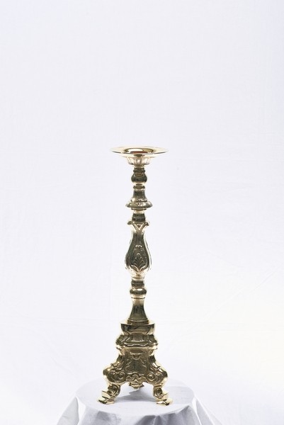 Candeliere "Rococò " , altezza cm.70- misura bossolo cm.5 . Questi candelieri sono forniti in ottone lucido,se richiesti dorati o nikelati sovrapprezzo del 15%.( A richiesta questo prodotto puo' essere elettrificato).