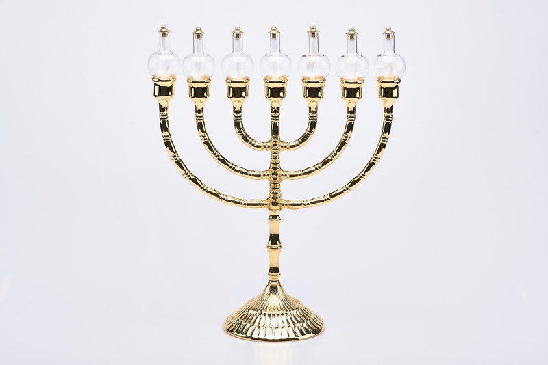 Candeliere a sette fiamme in ottone lucido con gocce, misura cm.34x28.