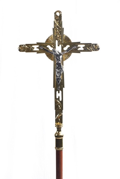 La Croce Astile (fornita senza base) è una croce da processione, interamente in bronzo, con manico in ottone, fornita bicolore, senza base perchè non indispensabile in quanto alla sommità della croce è ricavato nella fusione un anello che permette di riporla anche al muro della Sagrestia per mezzo di un semplice chiodo. (la base è art. A1148)
