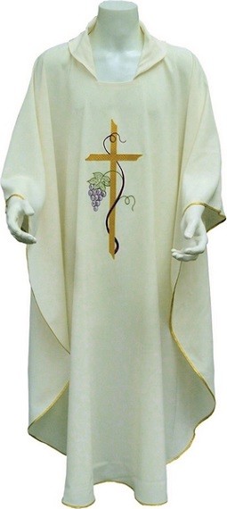 Casula in poliestere ricamo Croce, tralcio, uva (disponibile nei quattro colori liturgici)