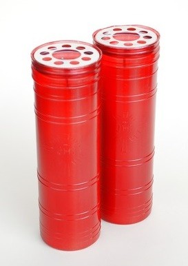 Cero liturgico per SS. Sacramento in pvc rosso con croce e IHS in rilievo
