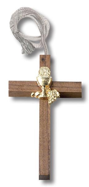 Croce in legno con simboli in metallo e cordoncino - cm. 9