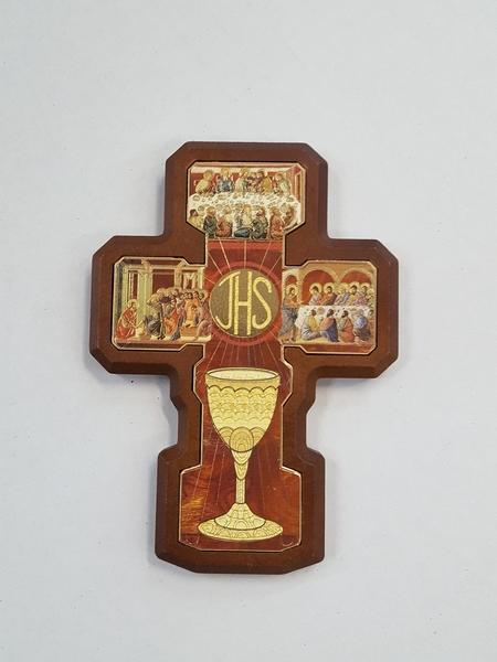 FINE SERIE 5 pezzi - Croce con simboli Prima Comunione da appendere - cm. 14