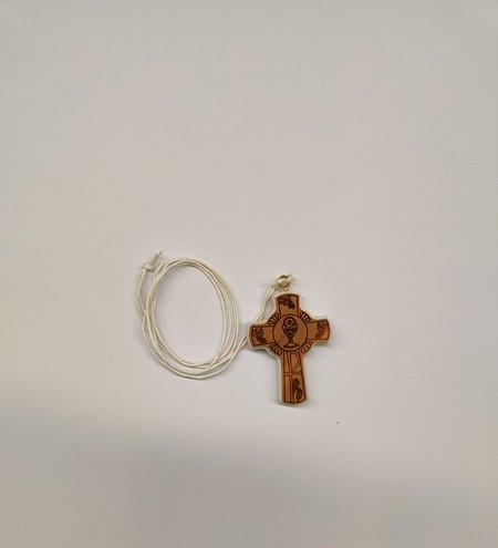 Croce comunione in legno con incisione calice, con laccio - cm. 5 in bustina trasparente