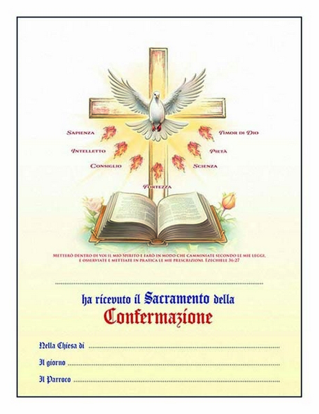 Pergamena ricordo Cresima 18x24 con dettagli oro