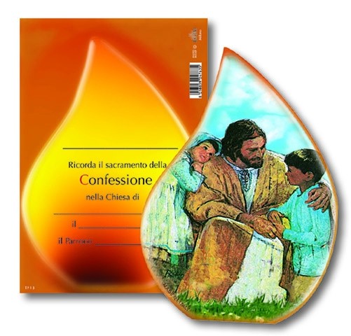 Fiammella legno da appoggiare cm. 9x13 con cartoncino ricordo Confessione