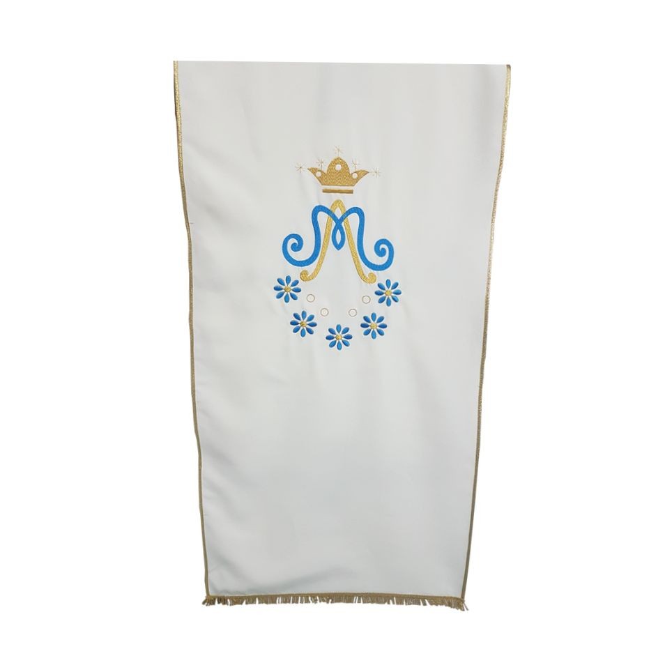 Coprileggio Mariano con ricamo M e margherite color avorio (poliestere 100%) - cm. 50x250
