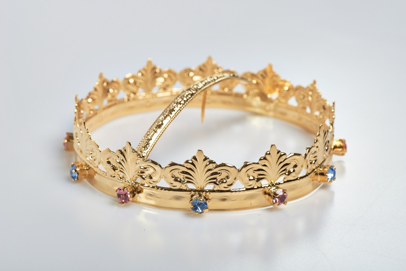 Corona per statua religiosa in ottone dorato 24k, saldata in argento, brillanti in vetro diamantato.
