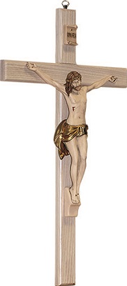 Croce in legno chiaro corpo in resina cm. 23