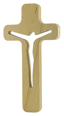 Croce in legno sagomato color ciliegio con corpo traforato - cm. 20 (in scatola)