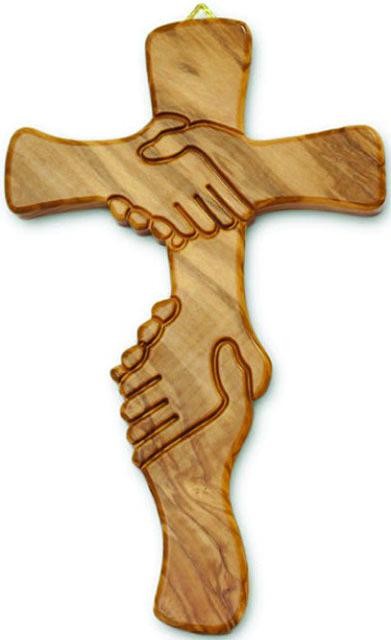Croce dell'amicizia in legno d'ulivo sagomato - cm. 18