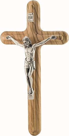 Croce in ulivo con corpo in metallo cm. 15 - (con scatola)