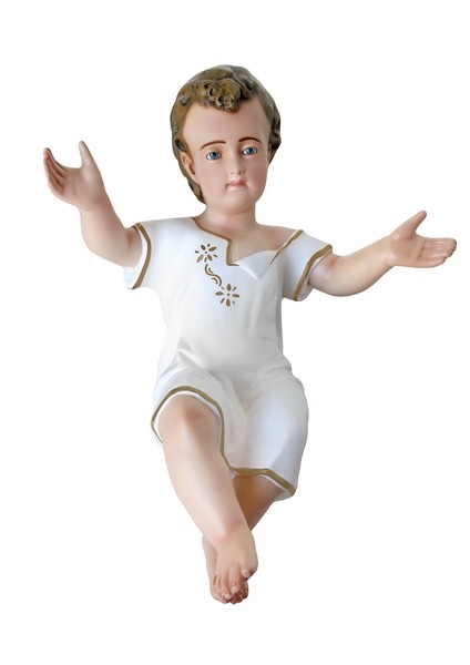 Gesù Bambino in resina, interamente dipinto e decorato a mano