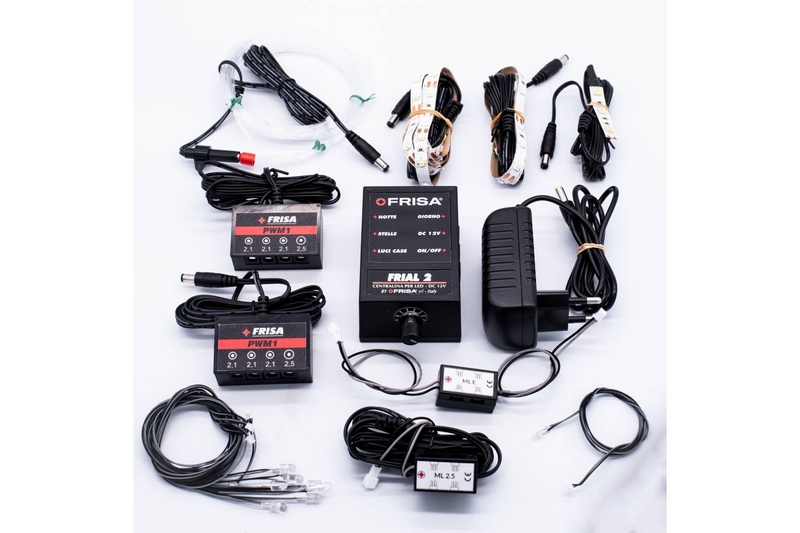FriaL 2 rappresenta un ottimo strumento per l’illuminazione led e l’alimentazione di effetti sincronizzati in Presepi di medie dimensioni. Oltre alle due dissolvenze dispone di una presa sincronizzata on/off per ciascuna fase, utili per alimentare luci led o effetti in sincronismo con il giorno e la notte. Dispone inoltre di una presa “stelle” con tremo-