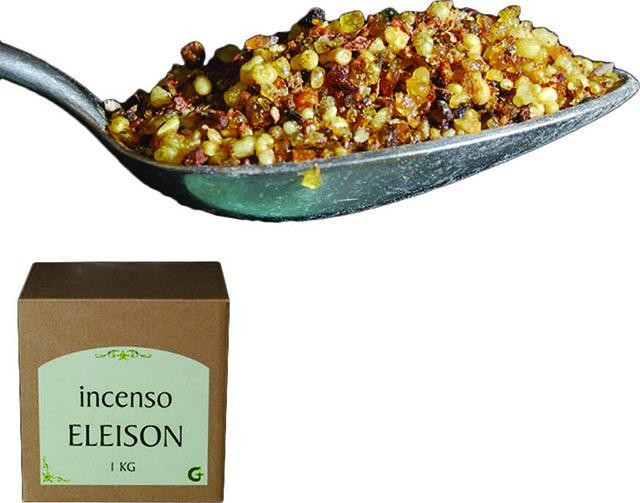 L'incenso Eleison è noto da secoli per la particolare lucentezza dei grani, confezionato in astuccio da Kg. 1