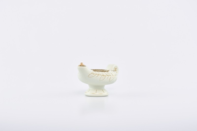 Lucerna porcellana colore avorio e decori oro cm. 14 - funziona a cera liquida