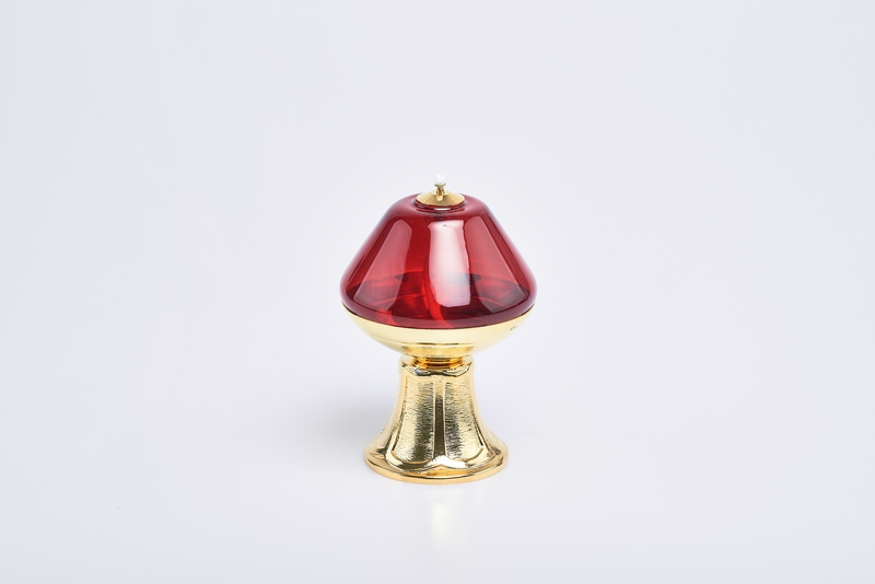 Lampada vetro soffiato rosso su base dorata diametro cm. 10 altezza cm. 14