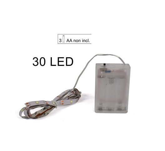 Striscia a led adesiva composta da 30 led bianco caldo - 3 batterie AA 1,5V (art. P8900)