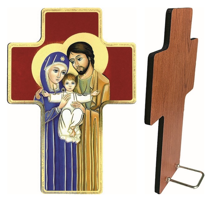 Croce in legno Sacra famiglia lamina oro da appoggio con piedino - cm.9x13