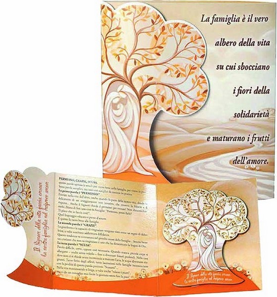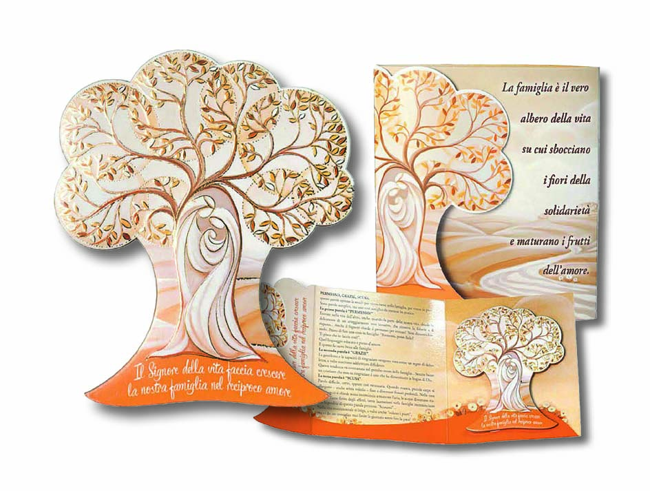 Confezione quadretto "Albero della vita Sacra Famiglia" in polimero con dettagli in oro - cm. 13x14