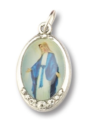 Medaglia ovale in metallo argentato con immagine resinata a colori - cm. 2,2x1,6