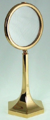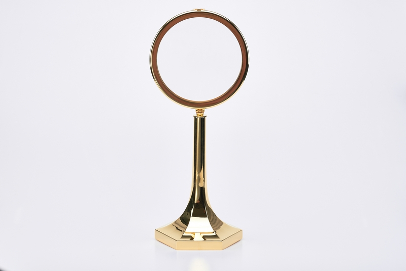 Teca dorata per Ostia Magna da esposizione in fusione ottone dorato zecchino base esagono - alt. cm. 40 diam. 15