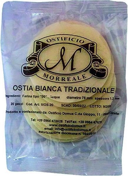 Ostia per celebrante Ø cm. 7,5 (conf. 20 pz) - Ingredienti: farina tipo 00, acqua