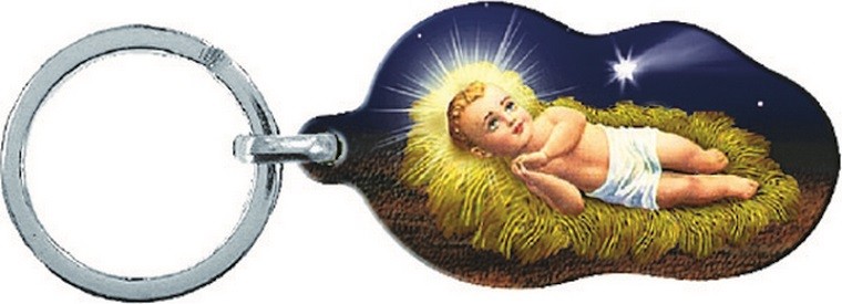 Portachiavi Gesù Bambino in legno sagomato cm. 5