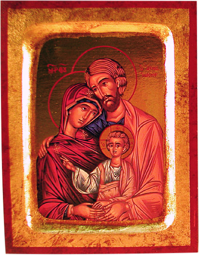 Icona greca stampa Sacra Famiglia su legno scavato - f.to cm. 13x17 (in scatola)