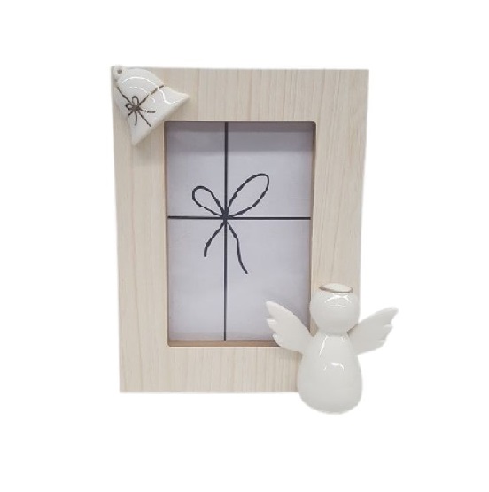 Portafoto in legno con angelo stilizzato in porcellana - alt. cm. 11,5x15 (con scatola)