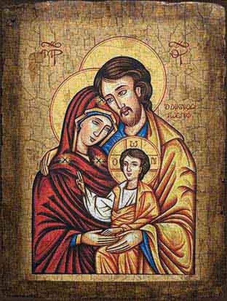 Quadro Sacra Famiglia stampa invecchiata su tavola legno cm. 36x48 (in scatola)