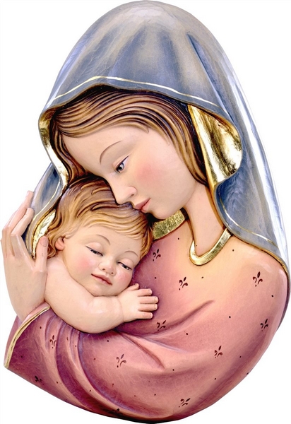 Rilievo Madonna con Bimbo da appendere cm.15 - scultura in legno colorato